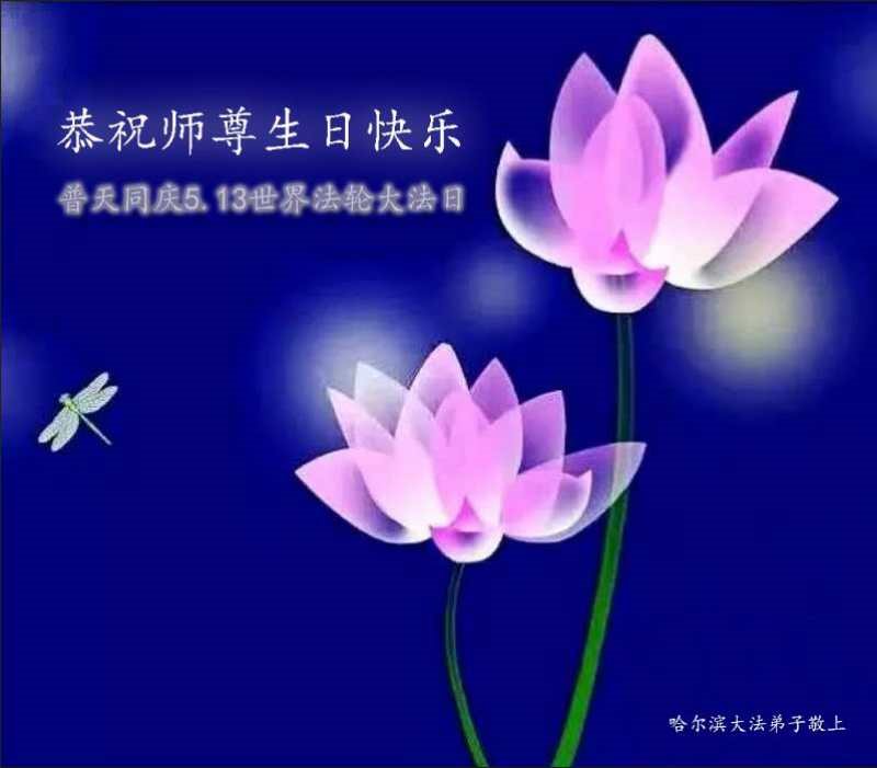 黑龙江哈尔滨大法弟子普天同庆5.13世界法轮大法日!恭祝师尊生日快乐!