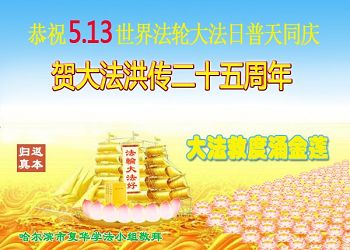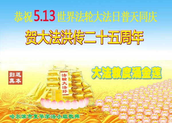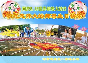 黑龙江哈尔滨平房大法弟子庆世界法轮大法日!恭祝师尊生日快乐!
