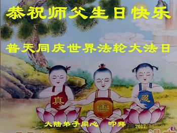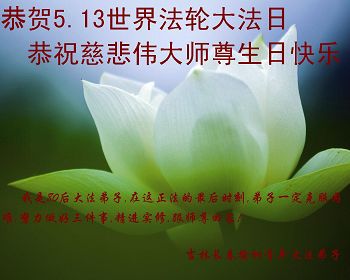 大陆大法弟子如初恭贺大法洪传25年暨世界法轮大法日! 弟子叩拜!敬祝师尊生日快乐! |