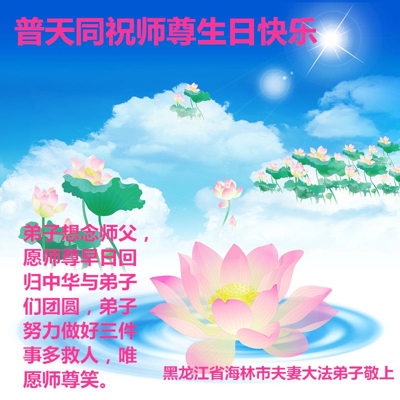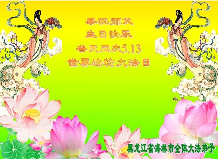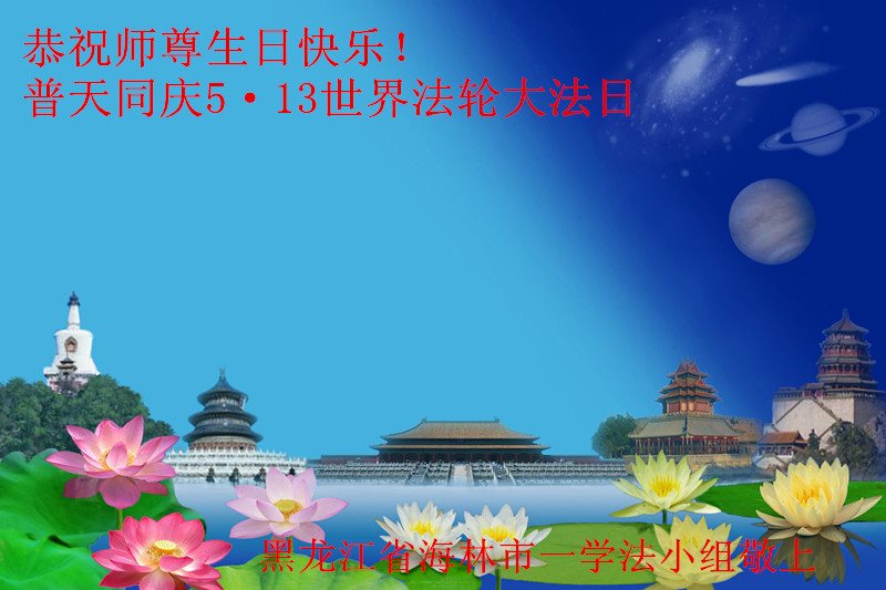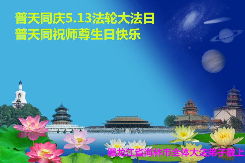 黑龙江省海林市全体大法弟子恭祝师父生日快乐!普天同庆世界法轮大法日! 黑龙江哈尔滨市一学法小组全体大法弟子恭祝伟大的师尊华诞!