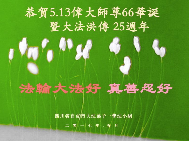 四川自贡市大法弟子一学法小组恭贺法轮大法日暨师尊华诞!