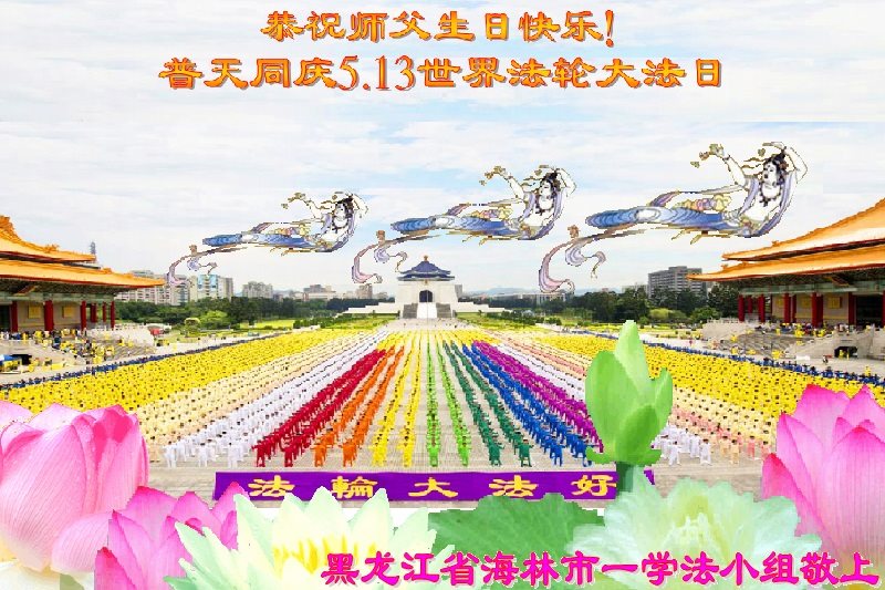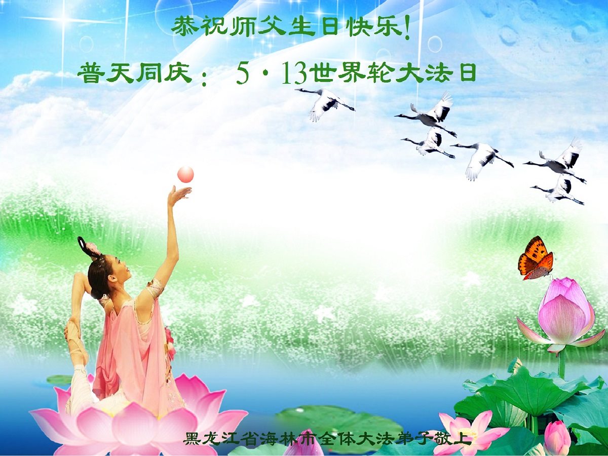 黑龙江省牡丹江市海林市全体大法弟子恭祝师父生日快乐!普天同庆5·13世界法轮大法日!
