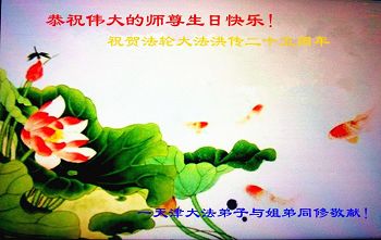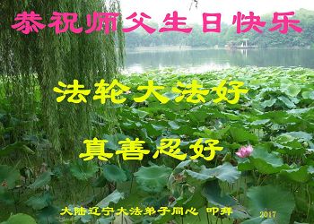 我们小组一位82岁的大法弟子说:“我盼望师父早日回国,与大陆弟子团聚。” 辽宁一大法弟子恭祝师父生日快乐!