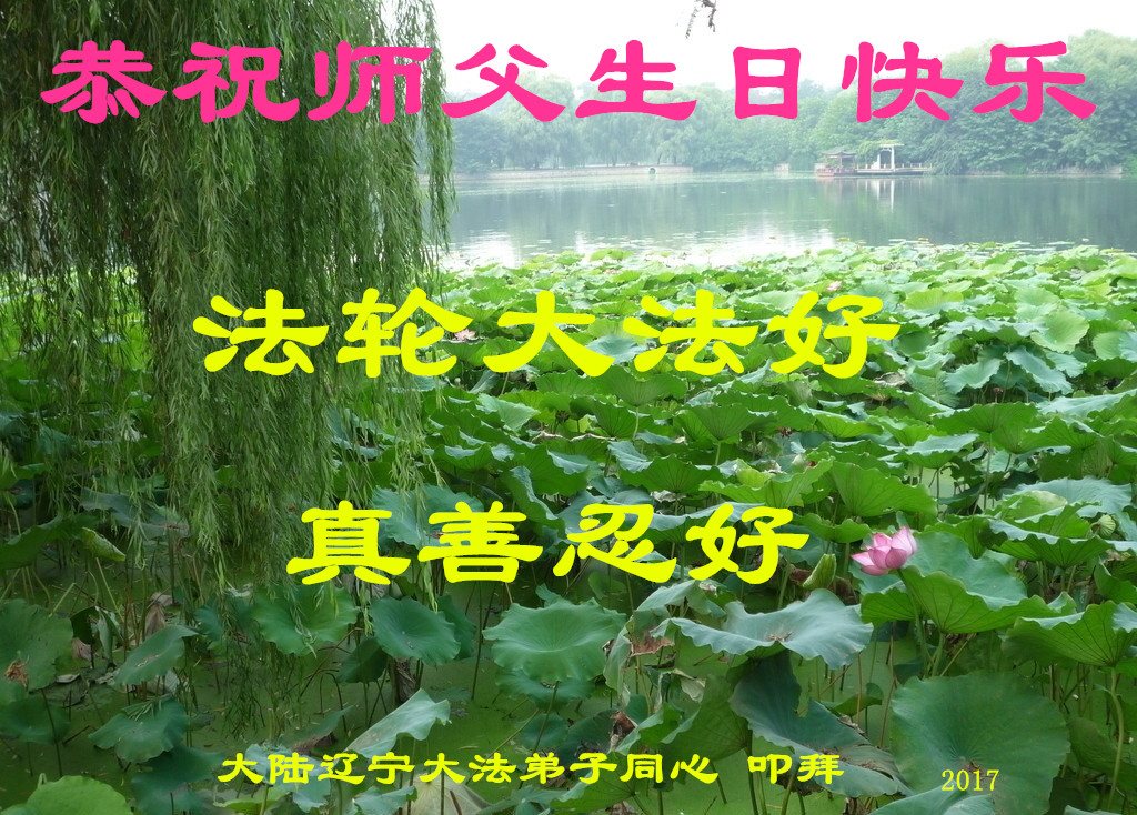 师父您辛苦了!弟子想念您! 我知道师父就在我身边时刻保护着弟子,千言万语也无法表达对师父感恩,唯有在今后的修炼中多学法多救人,走正修炼路跟师父回家。 辽宁一大法弟子恭祝师父生日快乐!
