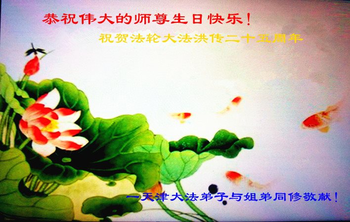 黑龙江哈尔滨大法弟子母女恭贺世界法轮大法日!恭祝师尊生日快乐!