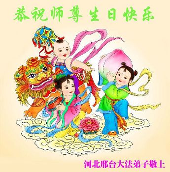 【明慧网二零一七年五月十一日】 河北邢台一学法小组大法弟子恭贺法轮大法日!恭祝师尊生日快乐!
