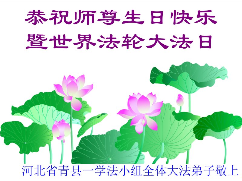 师尊华诞下凡间。 大法洪传二五年, 佛恩浩荡满人间。 助师正法兑誓言, 众生得救尽欢颜。 弟子恭祝师尊好, 跪拜师尊法像前。 佳木斯大法弟子 2017.5.13。 河北省沧州市青县一学法小组全体大法弟子恭祝师尊生日快乐!