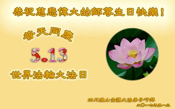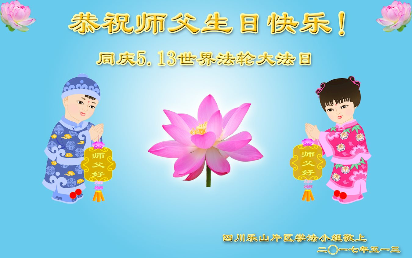四川乐山全体大法弟子恭祝慈悲伟大的师尊生日快乐!普天同庆5.13世界法轮大法日!