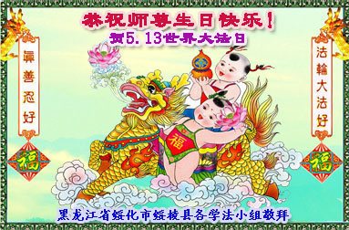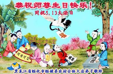 黑龙江绥化市大法弟子恭祝师尊生日快乐!同贺世界法轮大法日!
