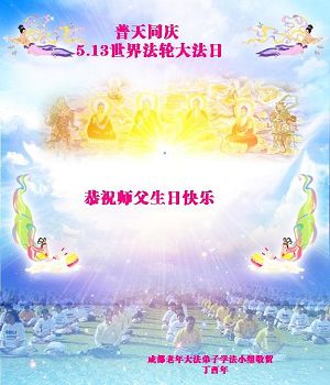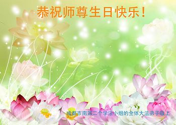 四川省成都市南郊二个学法小组的大法弟子们恭祝师尊生日快乐!