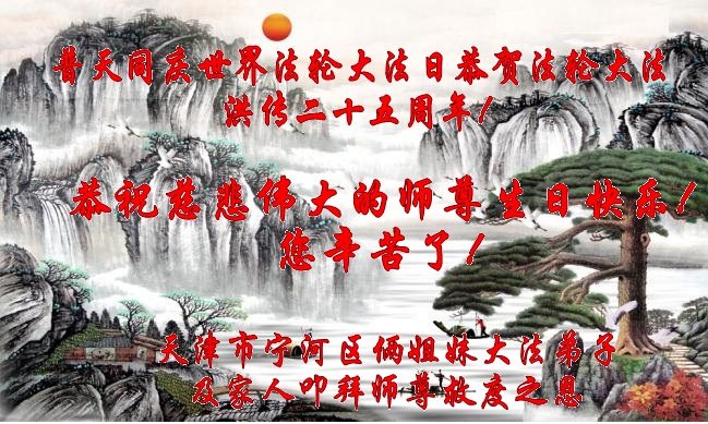 天津市宁河区姐妹大法弟子恭贺世界法轮大法日!祝师尊生日快乐!
