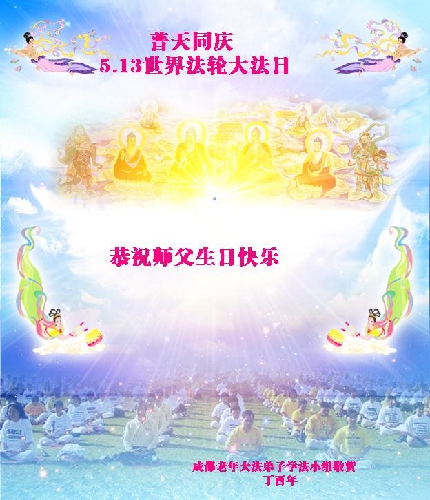 四川省成都老年大法弟子学法小组恭贺世界法轮大法日!