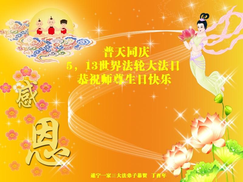 四川省遂宁一家三大法弟子恭贺世界法轮大法日!