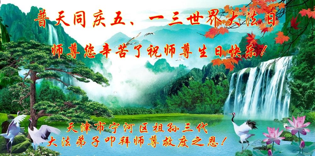 天津市宁河区大法弟子恭贺世界法轮大法日!恭祝师尊生日快乐!