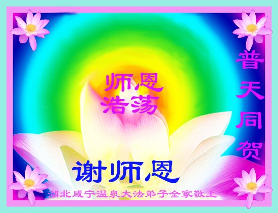 湖北咸宁温泉大法弟子跪拜谢师恩!