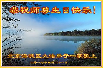 河南省新乡一大法弟子携全家五口恭祝慈悲、伟大的师尊生日快乐!
