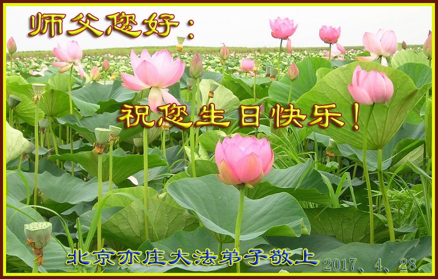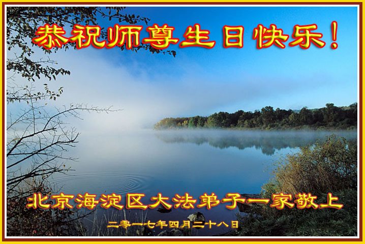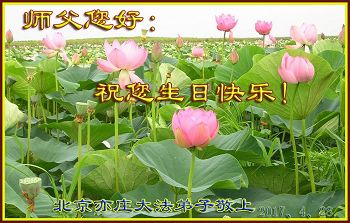 恭祝师父生日快乐! 谢谢师父,法轮大法好,真、善、忍好。 普天同庆五一三世界法轮大法日! 安达市大法弟子叩拜 北京海淀区大法弟子一家祝师尊生日快乐!