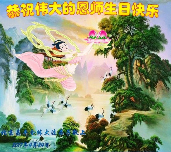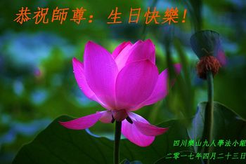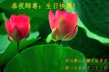 弟子想念您,您为弟子操尽了心,用尽人间的语言无法表达对师尊的感恩之情,不辜负师尊的慈悲苦度,学好法,向内找,更加精進,做好三件事,兑现自己的誓约,跟师尊回家! 2017年4月24日 四川乐山全体大法弟子恭祝师尊生日快乐!