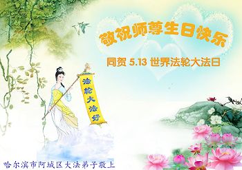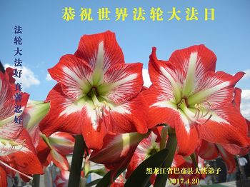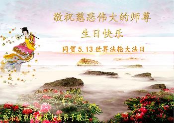 2017年的法轮大法日就要到了,我们夫妻大法弟子组成的大法修炼之家,恭贺大法日及大法师尊生日快乐!祝愿所有的大法弟子珍惜助师正法的最后时刻,勇猛精進做好三件事,跟师父回家! 黑龙江省哈尔滨市阿城区大法弟子恭祝师尊生日快乐!