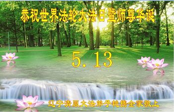 辽宁省抚顺市清原县大法弟子携全家恭贺世界法轮大法日!恭祝师尊生日快乐!