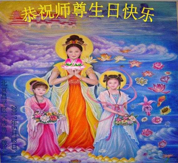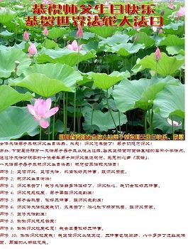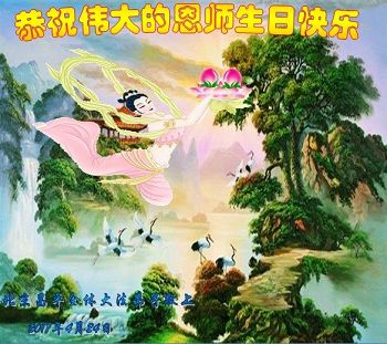 恭祝慈悲伟大的师父生日快乐!恭贺法轮大法日! 能够得到大法,做师父的弟子,是生命中最幸福、最殊胜、最自豪的事情,千言万语也无法表达弟子对师父的感激与想念之心。 师父,祝您生日快乐! 大陆大法弟子恭祝师尊生日快乐!