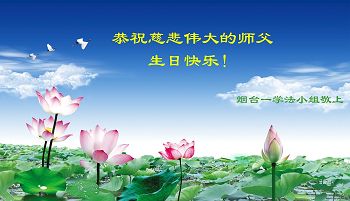 我们至尊致敬慈悲伟大的师父您辛苦了,衷心的感谢伟大师尊的慈悲苦度,我们这些不精進的弟子向师父问好。 我虽然都是九九年以前得法的弟子,但是由于各种人心的牵绊先后都出现过不同程度的迷茫和消沉,有的甚至掉队。经过这么些年的风风雨雨,我们见证了师父的慈悲伟大,见证了大法的金刚不破,坚不可摧。可是由于我们自身修炼的状态,影响了救度众生,真是愧对师父的浩荡佛恩。 我们近几年才成立了学法小组,学员也在不断的增加,白天晚上有时间就在一起学法,互相交流,互相鼓励,坚信师父,坚信大法,不断的去除各种人的观念和执着,同化大法,圆满随师还。 弟子叩拜师尊! 二零一七年三月二十三日 山东烟台市一学法小组恭祝师父生日快乐!