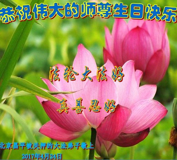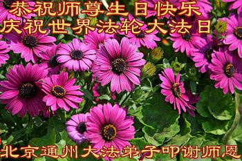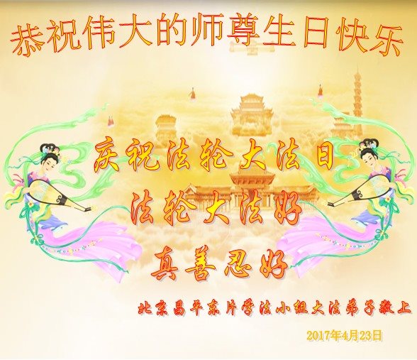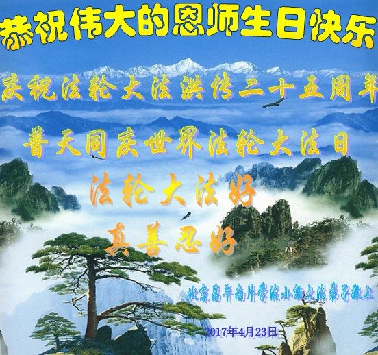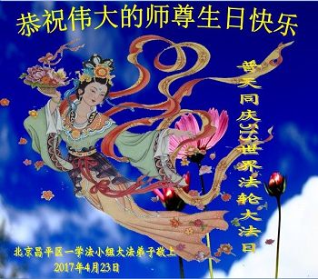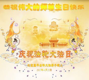 【明慧网二零一七年五月十一日】 北京通州大法弟子恭祝师尊生日快乐!庆祝世界法轮大法日!