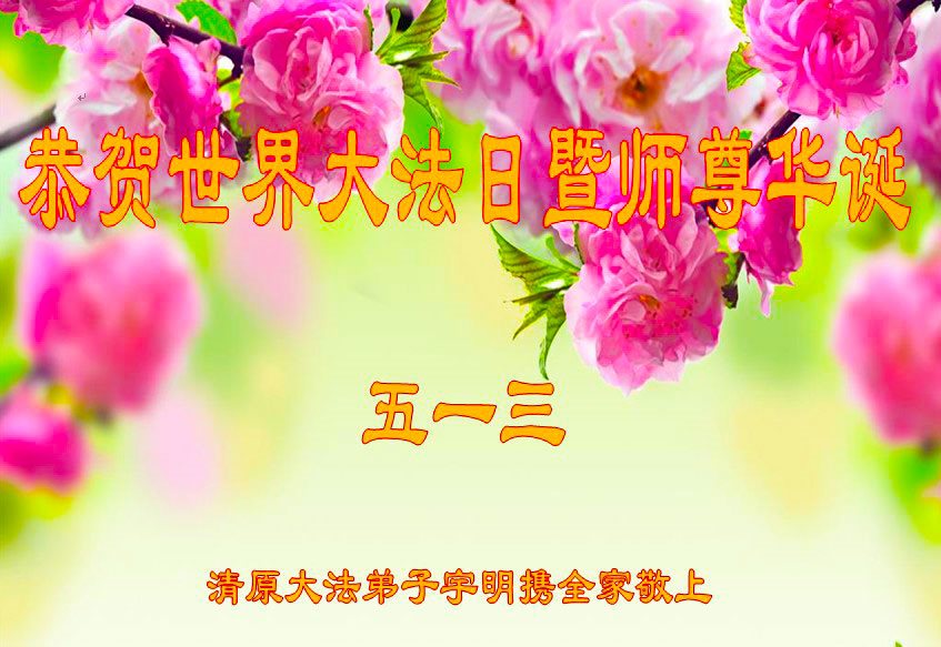 感恩师尊慈悲救度!珍惜师尊用巨大承受延续来的时间,修好自己,多救人。不愧正法时期大法弟子称号! 辽宁省抚顺市清原县大法弟子携全家恭贺世界法轮大法日!恭祝师尊生日快乐!