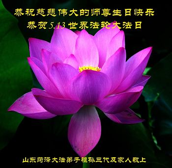 山东省菏泽大法弟子祖孙三代及家人恭贺法轮大法日!