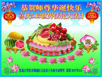 黑龙江佳木斯大法弟子恭祝伟大师尊生日快乐!并祝贺世界法轮大法日!