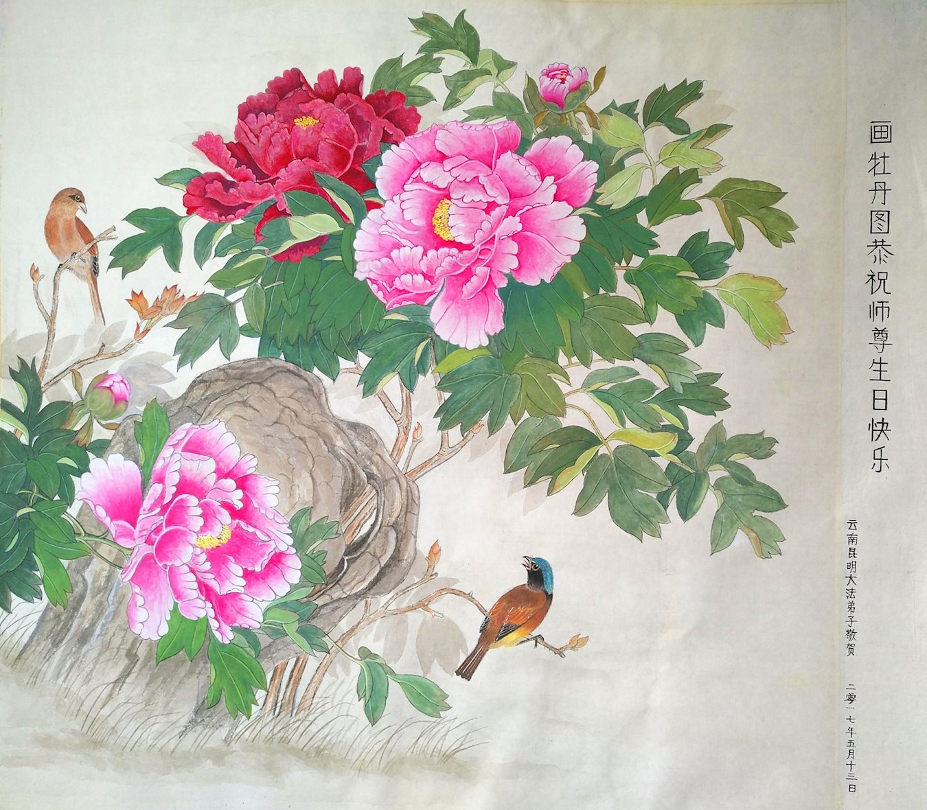 云南昆明大法弟子画牡丹图恭祝师尊生日快乐!同庆法轮大法日!