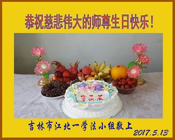 师父您辛苦了!为了众生得救,您替众生承受的太多太多了。众生无法报答。 作为弟子的我们,只有做好三件事,多救众生,做一名合格的大法弟子,来报答师 恩。 吉林市一大法学习小组全体弟子敬上 2017年5月5日 吉林省吉林市舒兰市大法弟子恭祝师尊华诞!