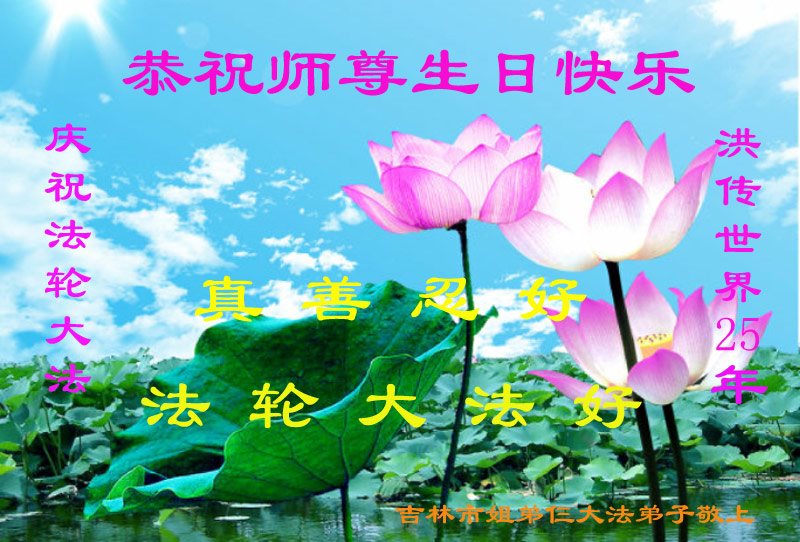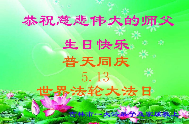吉林市一大法弟子及家属恭祝师父生日快乐!普天同庆法轮大法日!