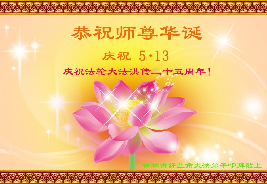 吉林省吉林市舒兰市大法弟子恭祝师尊华诞!庆祝5.13世界法轮大法日!庆祝法轮大法洪传二十五周年!