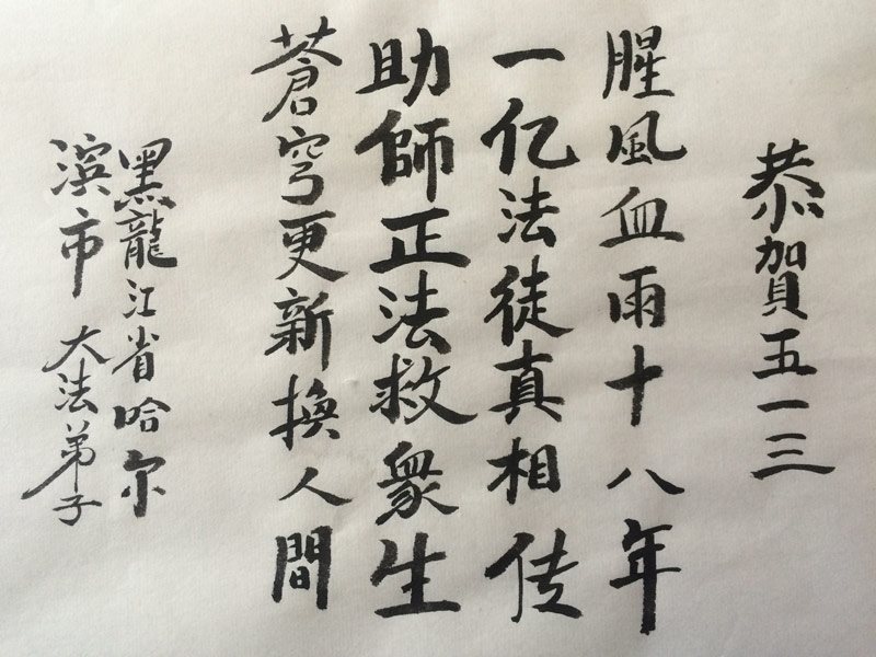 大陆大法弟子恭贺师尊生日快乐!及恭贺世界法轮大法日!