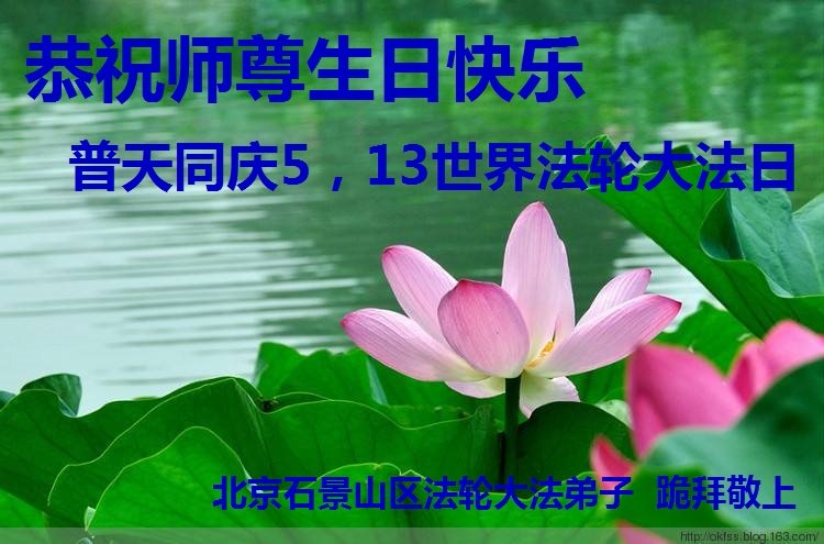 师尊您辛苦了!北京大法弟子想念您!我们会听师尊的话,做好三件事,踏踏实实的修炼,兑现承诺,坚修到底,跟师尊回家!弟子跪拜敬上! 北京石景山区首钢大法弟子恭祝师尊生日快乐!