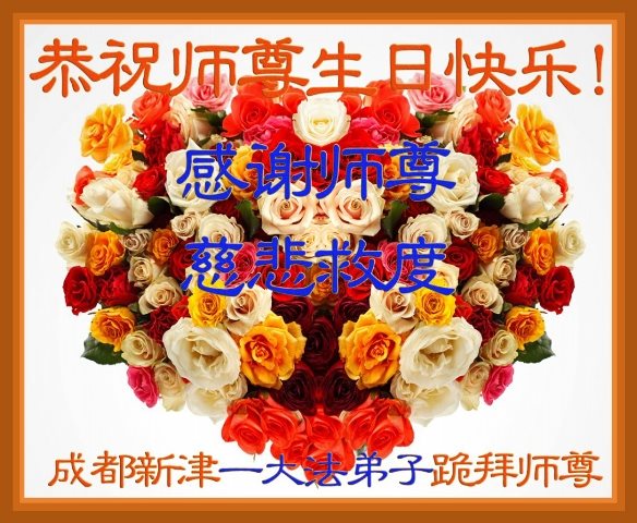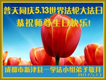 师尊辛苦啦! 庆祝五月十三日世界法轮大法日!感恩师尊慈悲苦度! 叩拜师尊 四川成都新津一大法弟子恭祝慈悲伟大的师尊生日快乐!