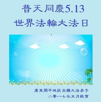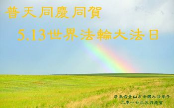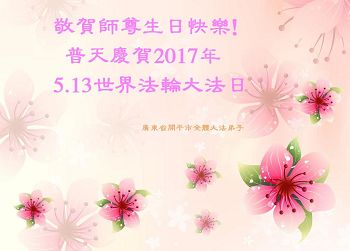 普天同庆5.13世界法轮大法日! 恭祝慈悲伟大的师尊生日快乐! 四川成都新津县一学法小组大法弟子敬拜 二零一七年五月 广东省江门市台山市全体大法弟子庆祝世界法轮大法日!