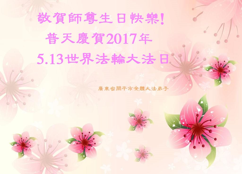 广东省江门市开平市地区全体大法弟子祝师尊生日快乐!