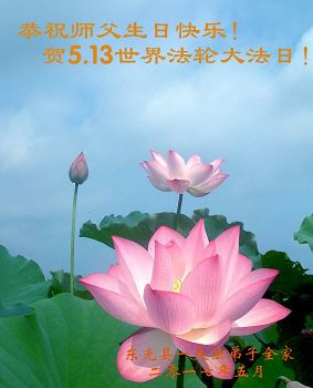 河北东光一大法弟子全家恭祝师父生日快乐!恭贺世界法轮大法日!