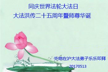 感恩师尊慈悲救度,剩下的日子一定精進实修,弟子携全家合十叩拜师尊! 外地在沪大法弟子同庆世界法轮大法日!