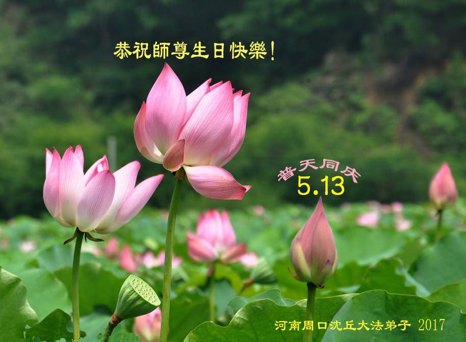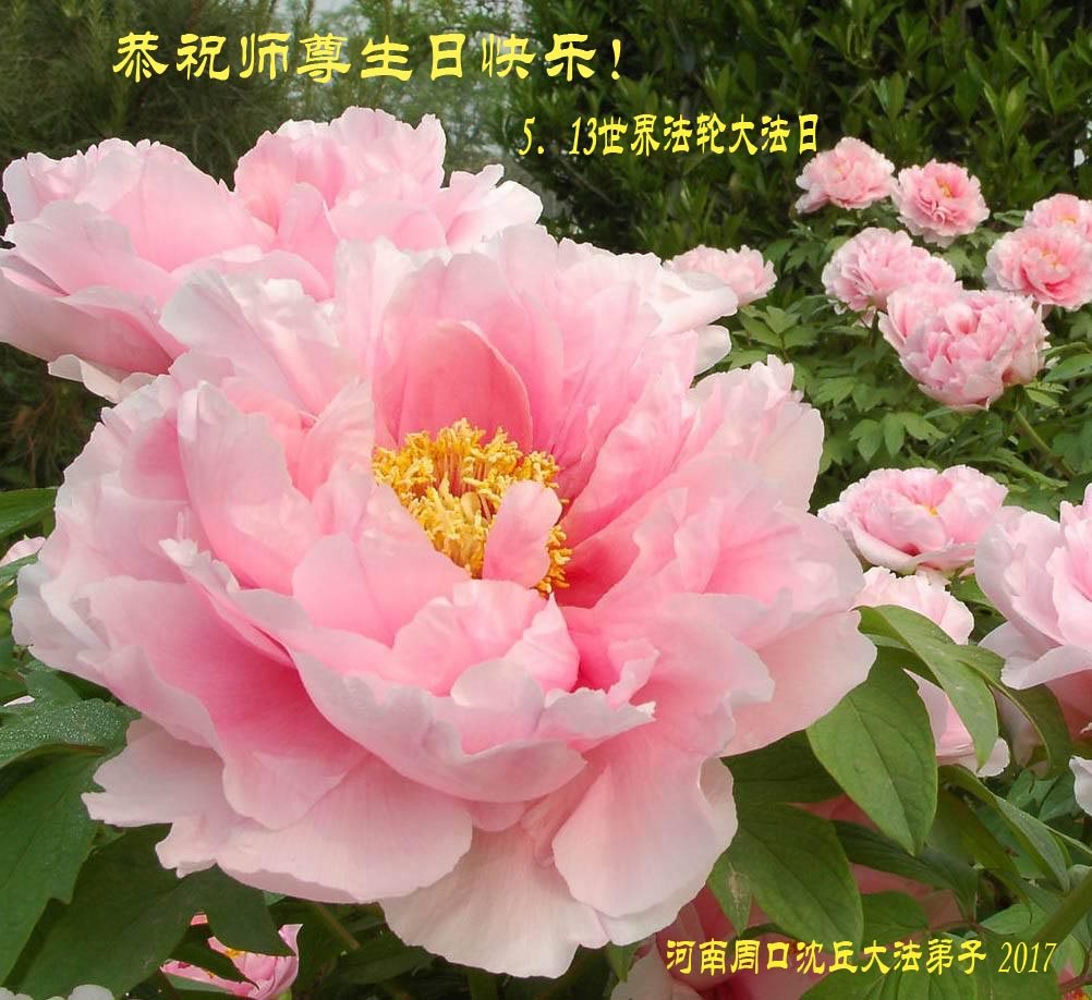 我们乡镇全体大法弟子一定会齐心协力消除间隔,在加强学法修好自己的基础上,各尽所能讲真相,救众生。 山东栖霞一乡镇全体大法弟子 2017年5月8日 河南周口沈丘大法弟子恭祝师尊生日快乐!