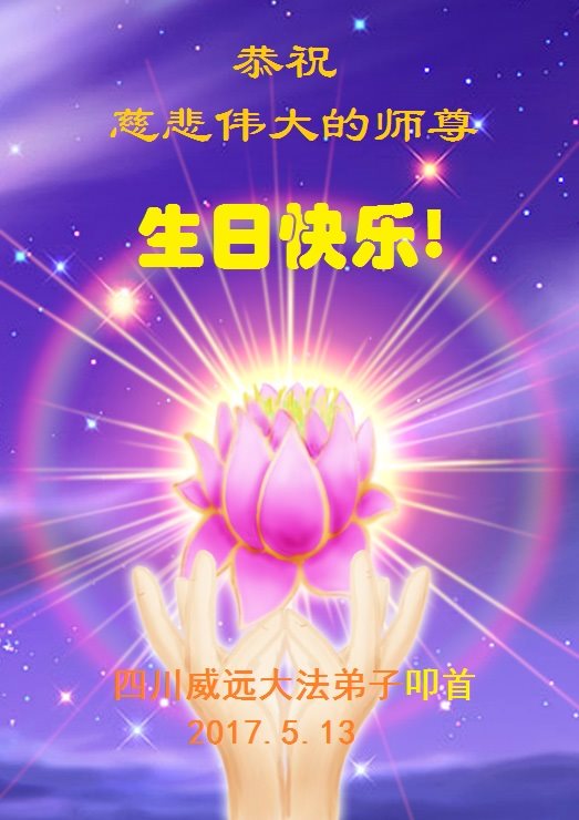 四川威远大法弟子恭祝慈悲伟大的师尊生日快乐!
