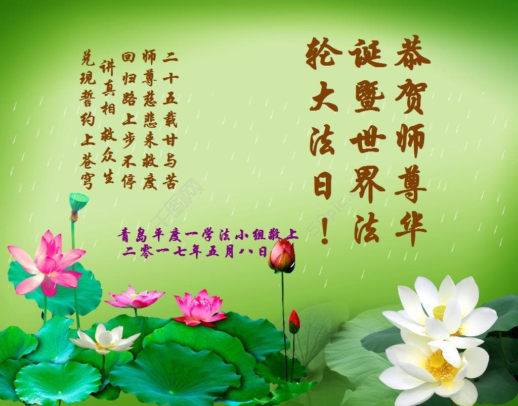 恭祝慈悲伟大的师父生日快乐! 恭贺法轮大法洪传二十五周年! 北京市丰台区大法弟子敬贺 二零一七年五月八日 山东省青岛市平度市一家庭大法弟子恭贺伟大的师尊华诞及世界法轮大法日!