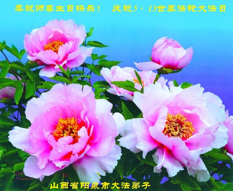 大法弟子清新及家人恭祝师尊生日快乐!师父辛苦了!同祝五一三世界法轮大法日。 山西省阳泉市大法弟子恭祝师尊生日快乐!庆祝五·一三世界法轮大法日!