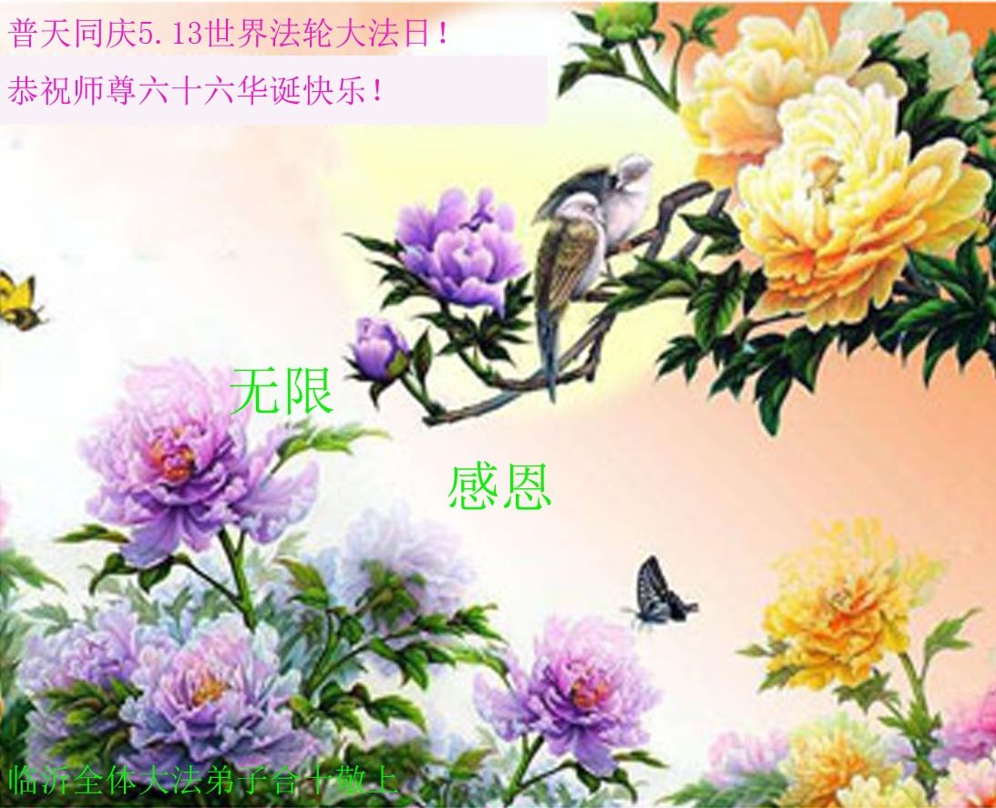 山东省临沂市兰山区大法弟子恭祝伟大师尊生日快乐!普天同庆世界法轮大法日!