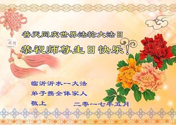 【明慧网二零一七年五月十一日】 山东省临沂市莒南县大法弟子恭祝师尊华诞!