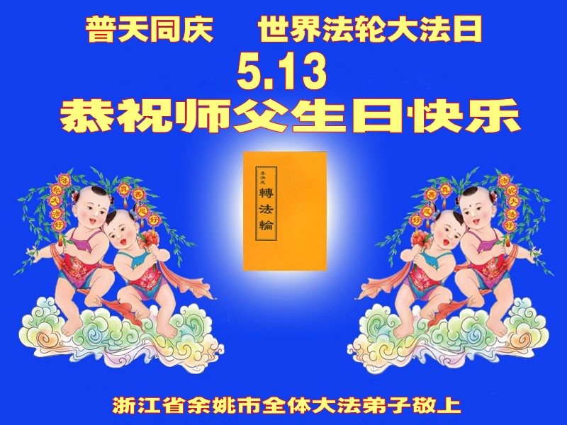 浙江省宁波市大法弟子恭贺世界法轮大法日!恭祝师尊生日快乐!