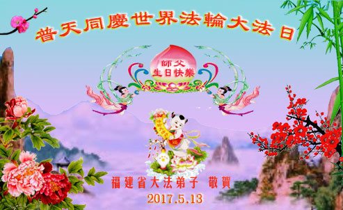 福建省福州市大法弟子恭祝师父生日快乐!恭贺世界法轮大法日!