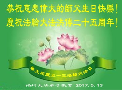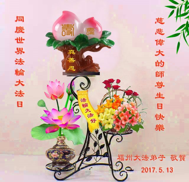 【明慧网二零一七年五月十一日】 福建福州一母女大法弟子恭祝世界法轮大法日!恭祝师父生日好!